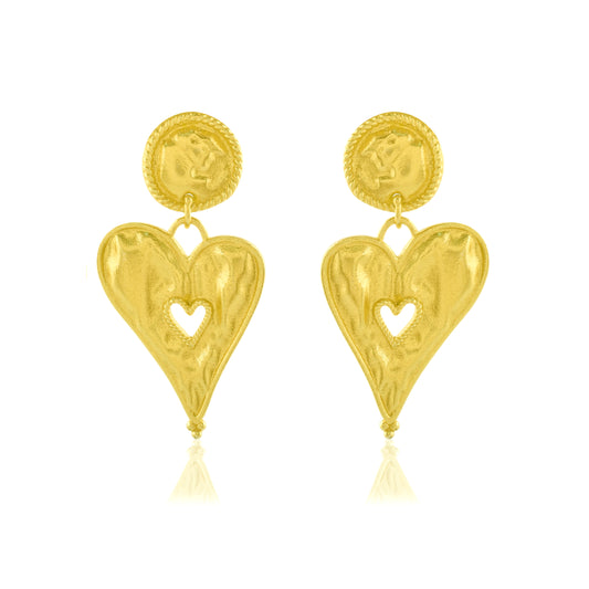 Heart in Hand Gold Earrings