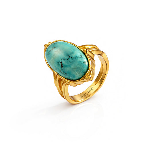 Gold Plated Turquoise Mosaic Statement Men's Ring