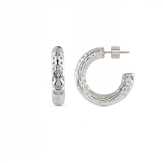 Etched Raw Silver Hoops Mini