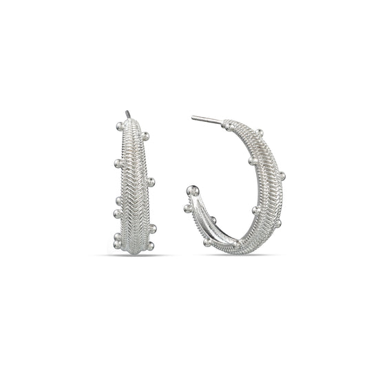 Silver Finish Dew Drop Chevron Hoops