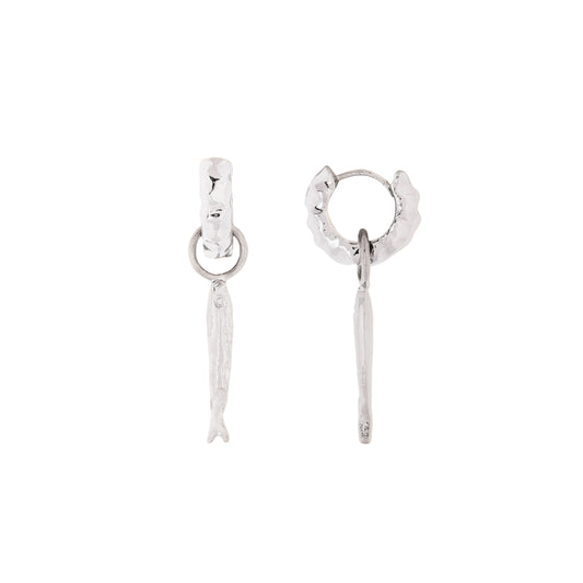 Silver Fish Charm Huggies Earrings