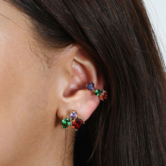 Chromatic Cascade Ear Cuff In 925 Sterling Silver ( Single Piece )