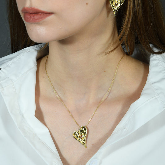 Sculpted Heart Chain Necklace