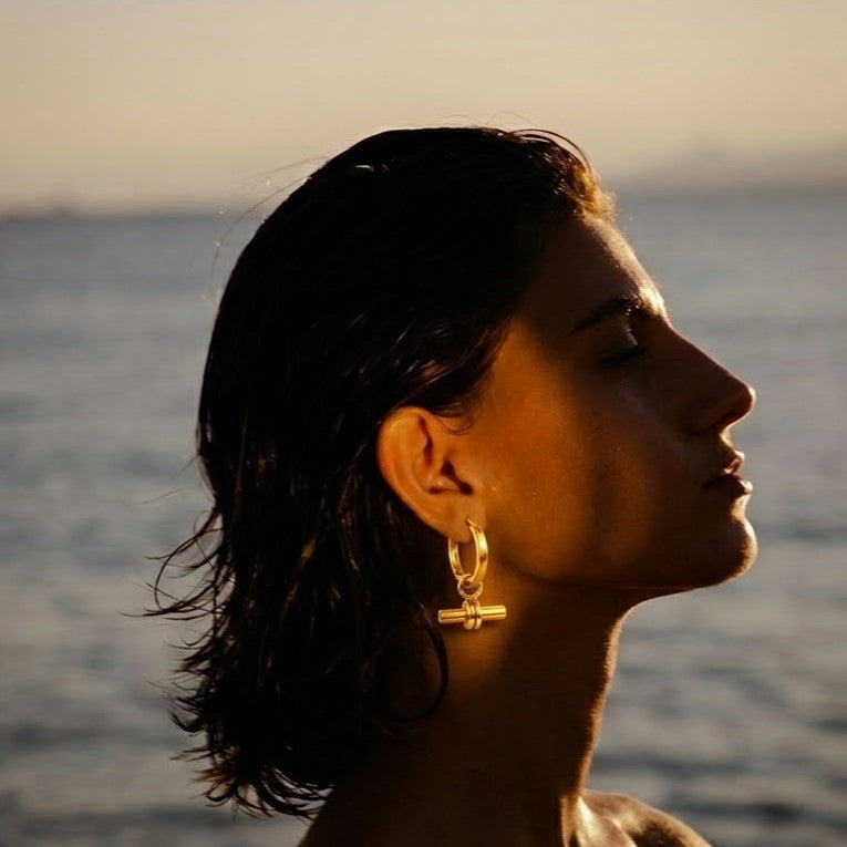 Sleek and minimal, these huggies are elevated with a chic bar charm that sways gently with movement. Lightweight and versatile, they’re perfect for daily wear or adding subtle flair to a night-out look. Their secure clasp makes them easy to wear all day without worry.
