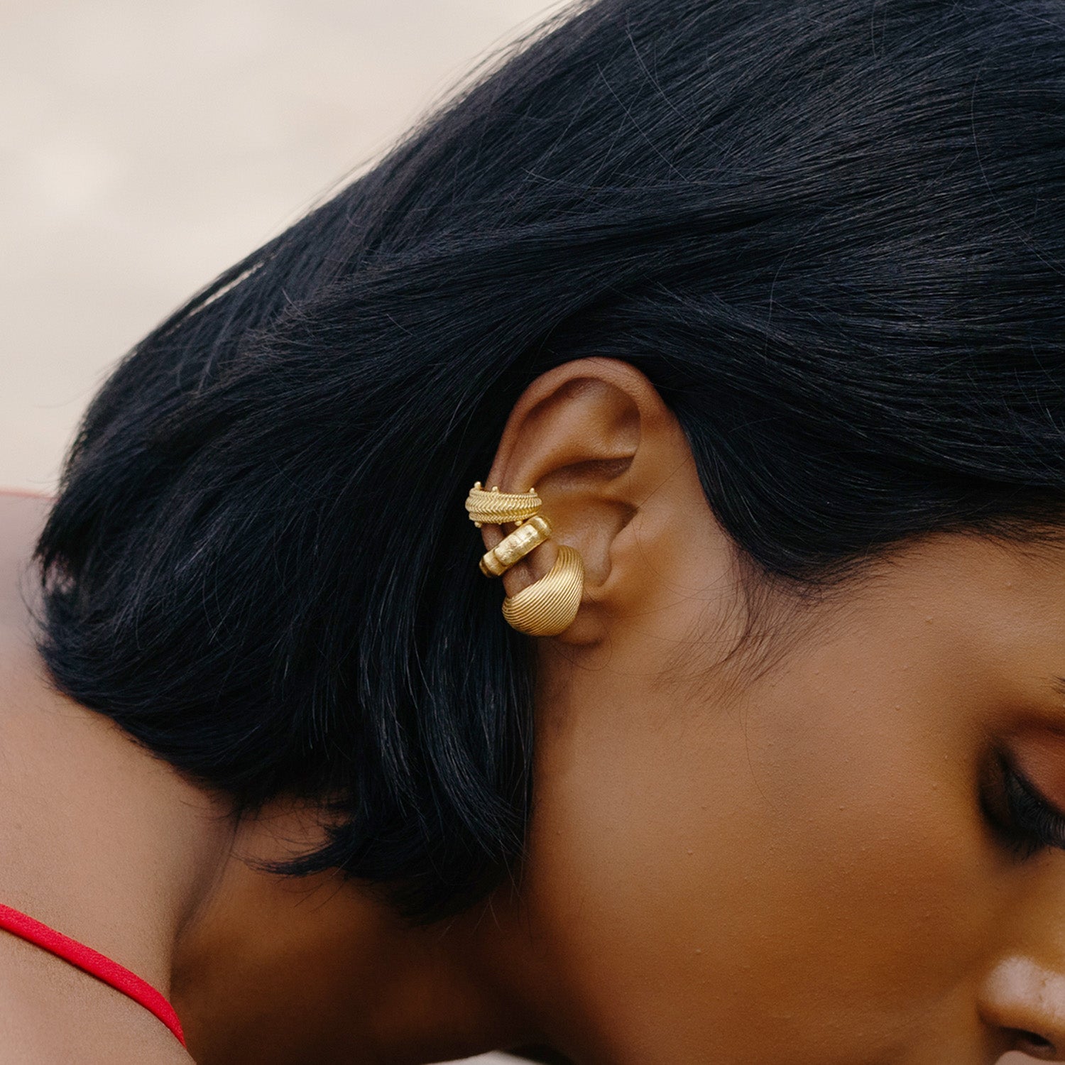 An elevated everyday ear cuff with a conscious twist—refined, sustainable, and uniquely detailed.