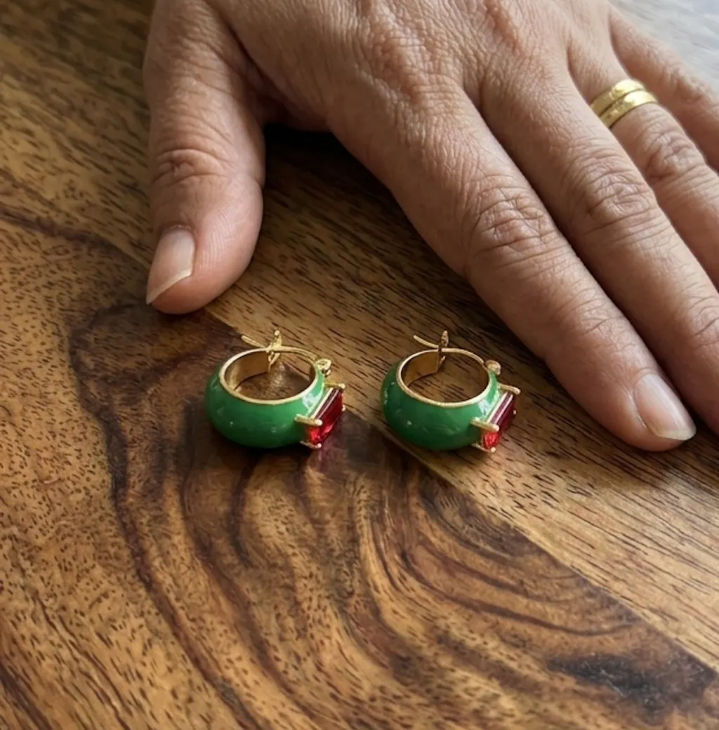 The Garnet Forest Hoop Earrings by Arvino are inspired by earthy tones and natural beauty. Crafted from pure 925 sterling silver and finished with 22kt real gold plating, these earrings feature rich garnet stones that add warmth and depth. The snug huggie design offers a comfortable fit for all-day wear. Lightweight and easy to style, these earrings work beautifully with everyday outfits as well as evening looks.
