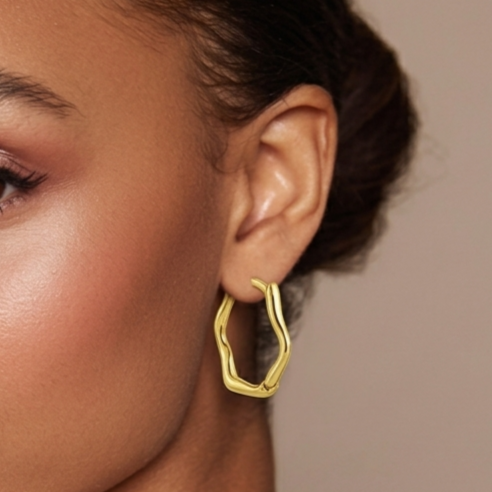 Crafted with uneven edges and a natural, hand-formed silhouette, these huggies bring earthy elegance. Great for everyday wear or pairing with organic textures, they offer a comfortable fit with unique character.