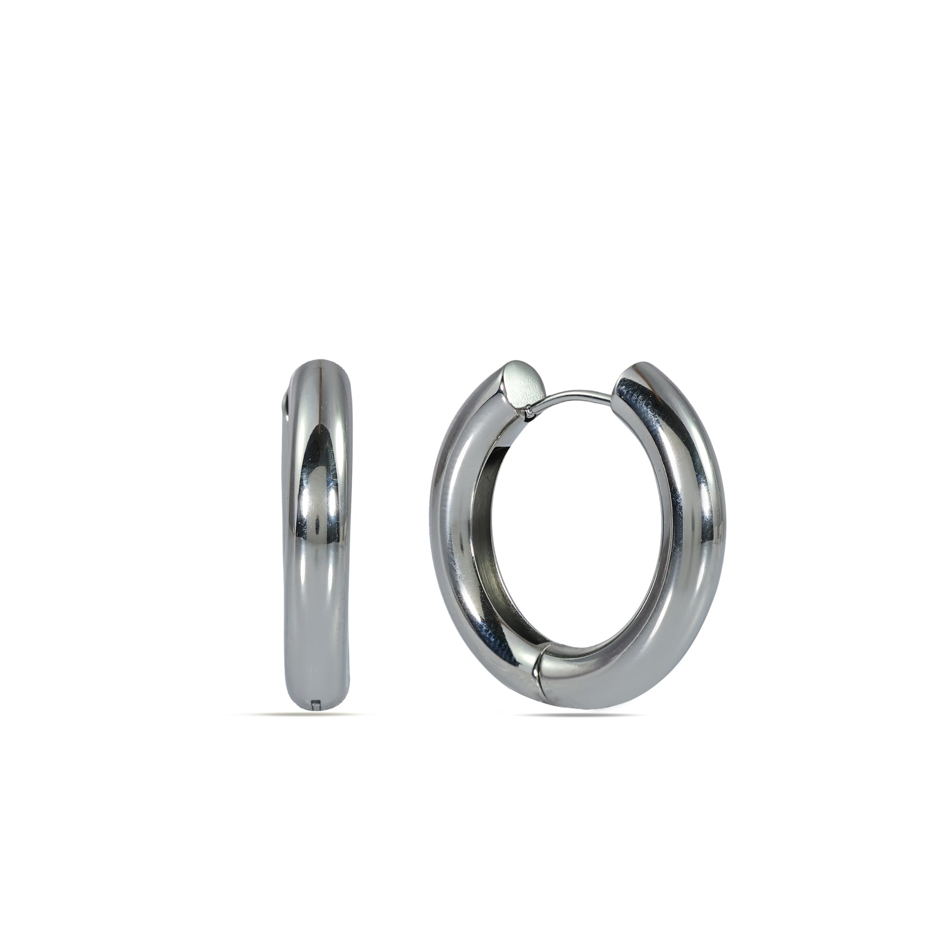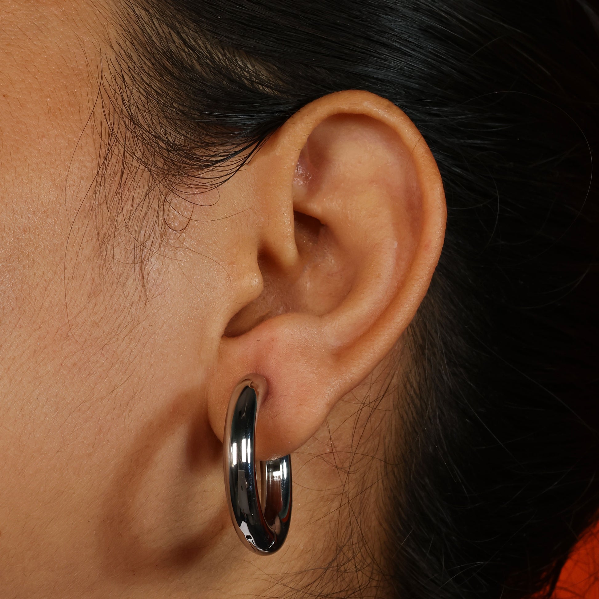 Elevate your look with Silver Era Hoops. These earrings feature a sleek, polished silver finish that adds a cool, contemporary touch to any outfit.